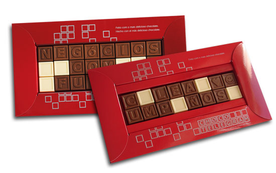Para las empresas es sin duda la mejor forma de lograr un gran impacto para el mensaje que quiere pasar... Quién no se acuerdará del contenido de un mensaje en chocolate? Irresistiblemente eficaz...